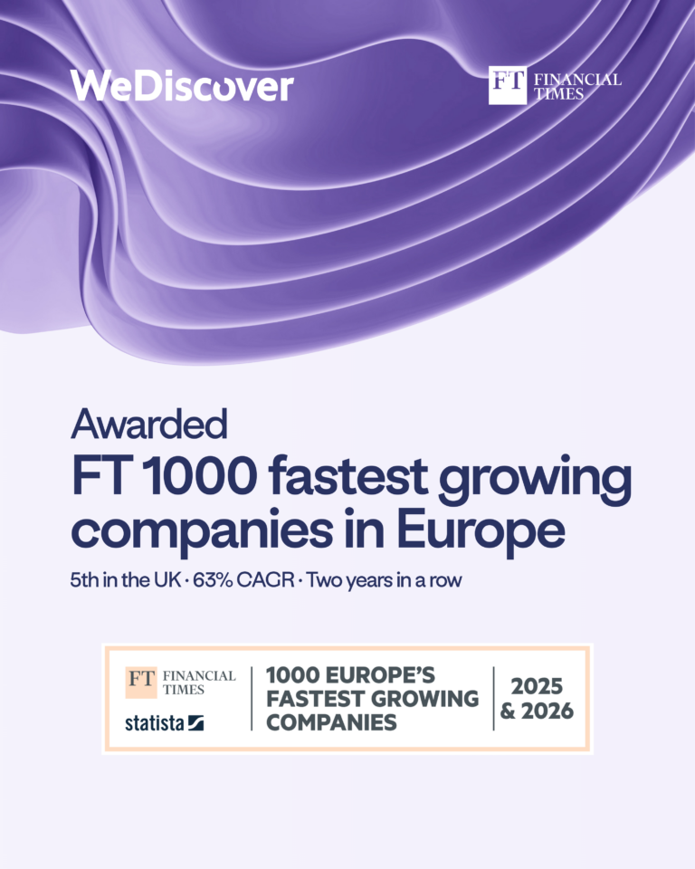 WeDiscover has been named on the Financial Times 1000 list of Europe’s fastest-growing companies for the second year running – ranked 5th in the UK, within the top 28% of all businesses on the list, and reflecting a compound annual growth rate of 63%.
